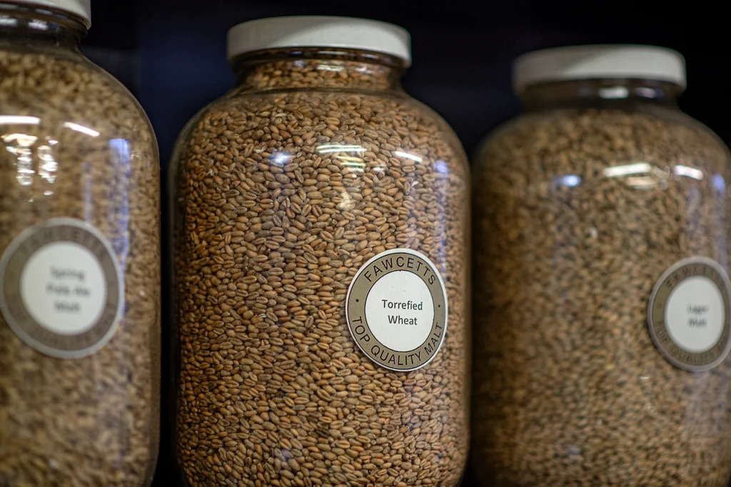 Made from raw wheat that is conditioned and heated to very high temperatures so that the starch gelatinises and the grain “pops”. There is no malty flavour, as it is not a malted product, and there are no residual enzymes for starch breakdown to sugar. As such it is often used as a basic source of starch and a flavour-diluent with the positive head-retention properties of wheat.